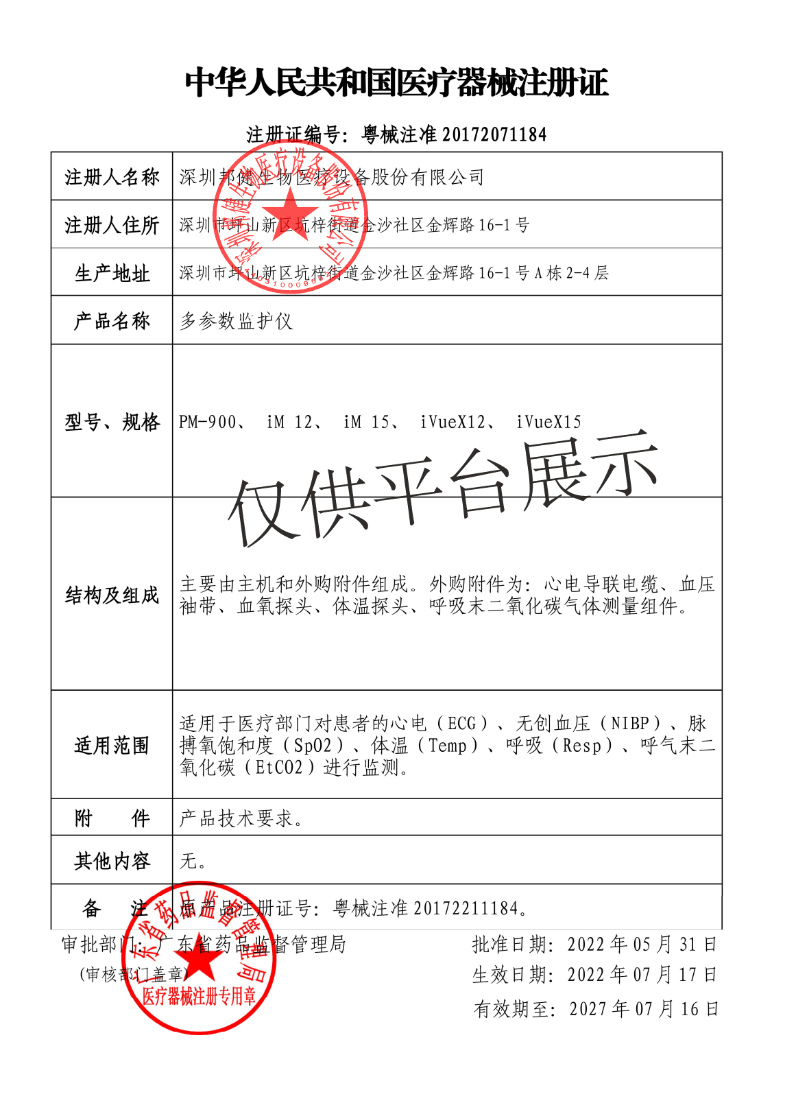 產(chǎn)品名稱 : | 邦健多參數(shù)監(jiān)護(hù)儀PM-900 |