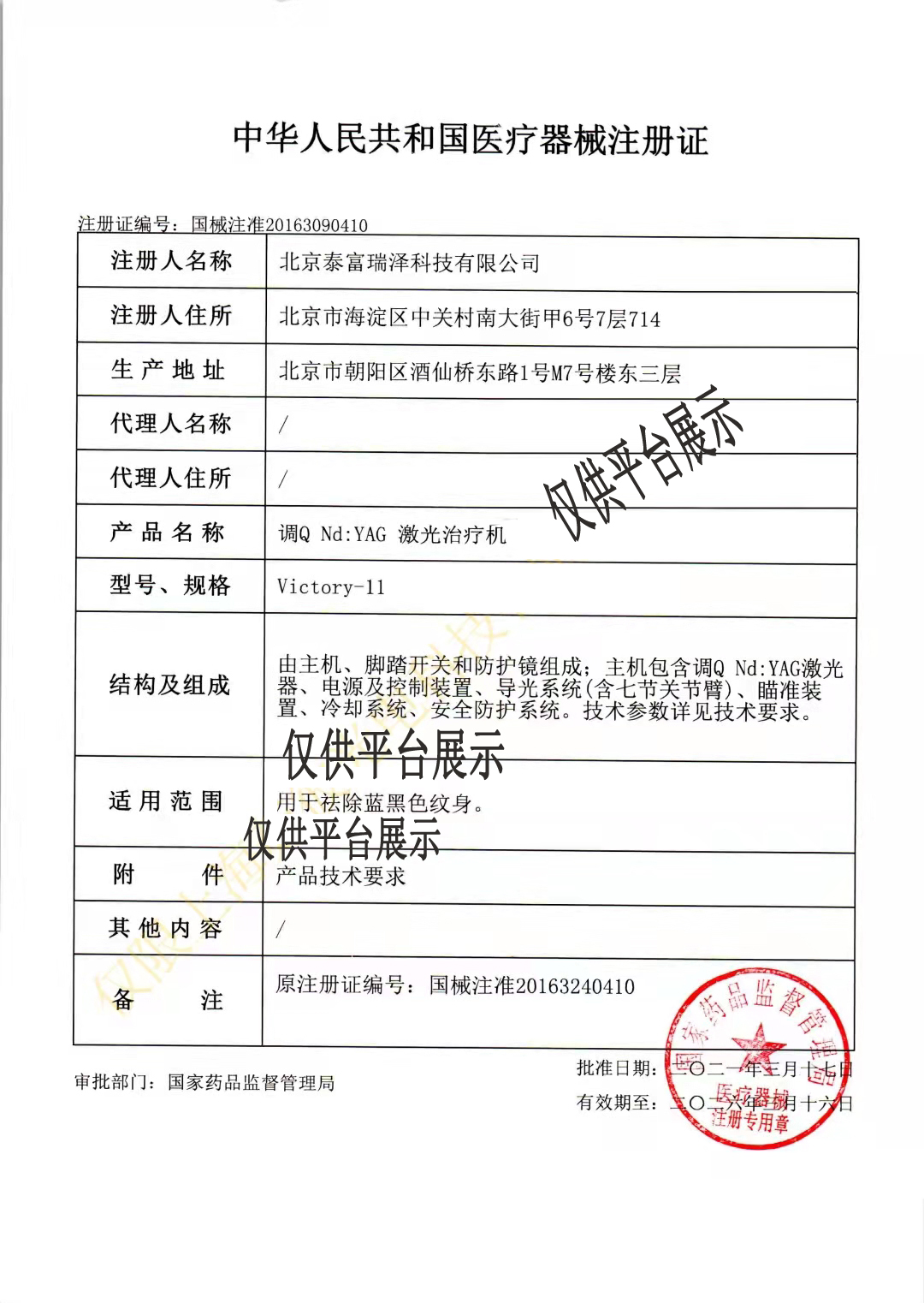 注冊證編號:國械注準(zhǔn)20163090410